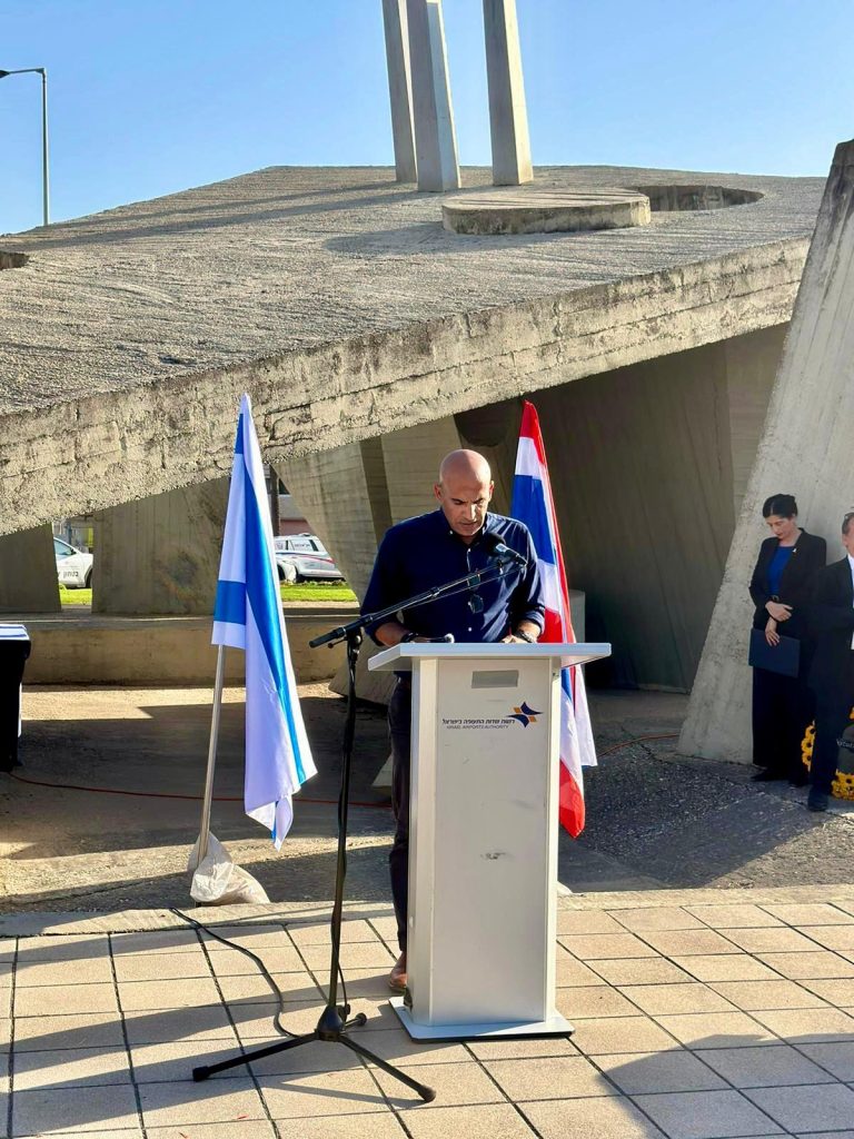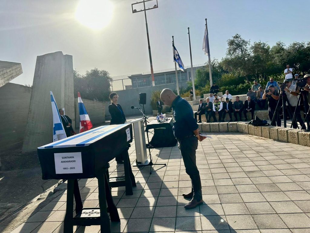 מזכ״ל תנועת המושבים ויו״ר התאחדות חקלאי ישראל, עמית יפרח בטקס ממלכתי לזכרו של סונטאיה אוקארסרי ז״ל, אזרח תאילנדי שנחטף ב־7 באוקטובר 2023 ממטעי האבוקדו של מושבי הנגב ונרצח בשדות ליד בארי: